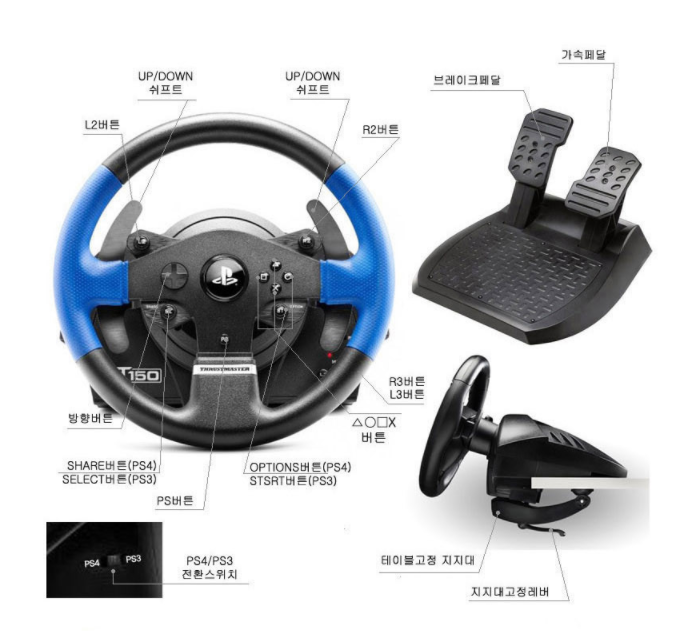 저희가 구입한 레이싱휠은 트러스트마스터 T150이에요..