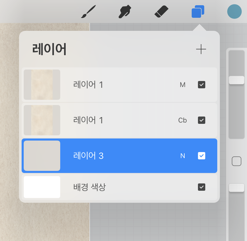 그런 다음 새로운 레이어를 추가하셔서(레이어 3) 추가한 레이어 3은 맨 아래로 내려주신 다음 레이어 3에 그림을 그리시면 됩니다.