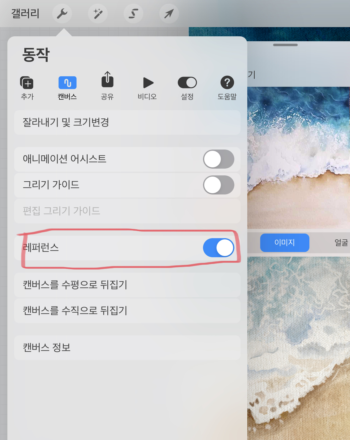 보고 그리고 싶은 이미지가 있으시면 "레퍼런스"를 선택하셔서 이미지를 불러오시면 됩니다.