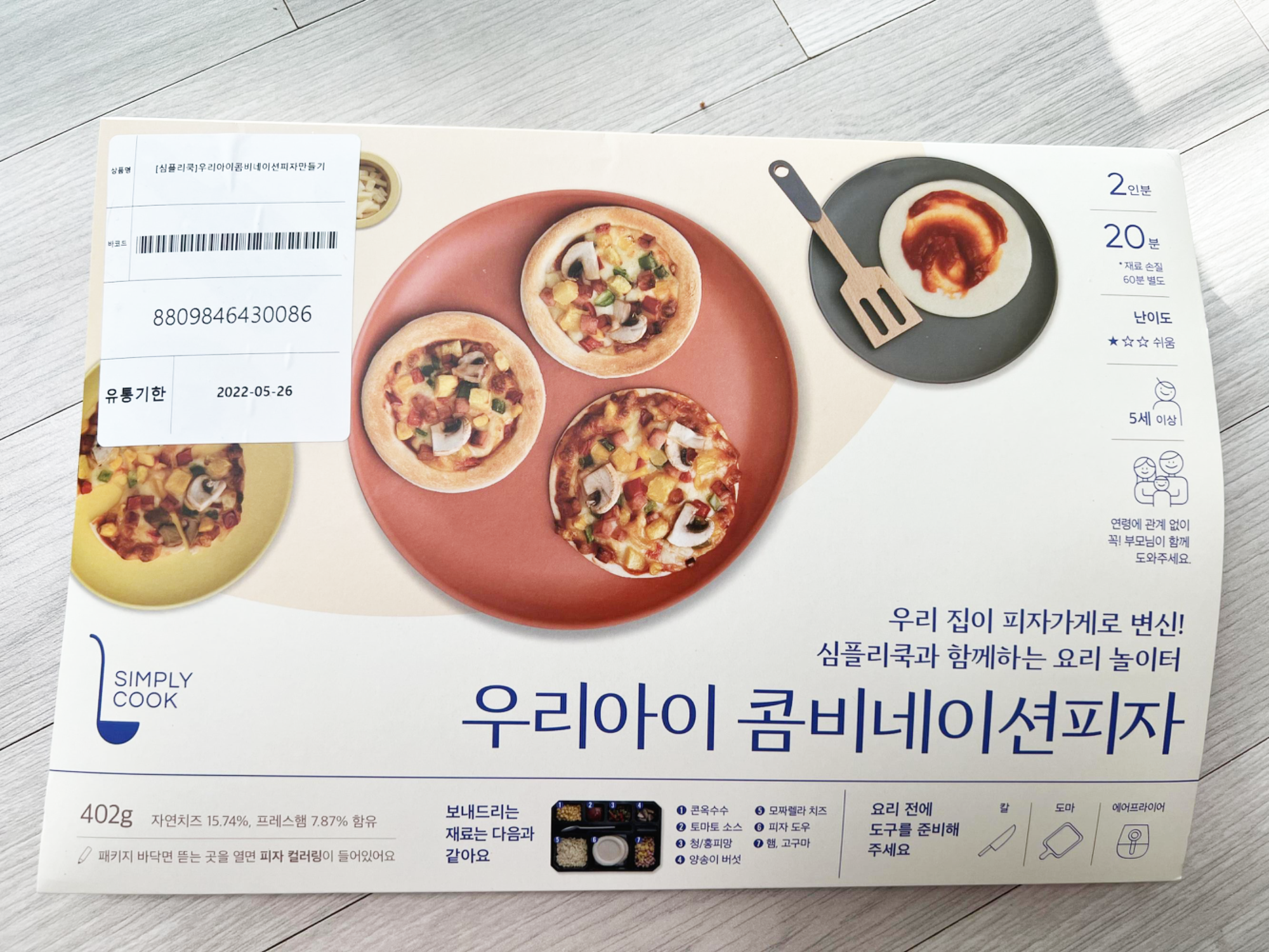 로켓프레시로 배달된 "심플리쿡의 우리 아이 콤비네이션 피자 만들기".