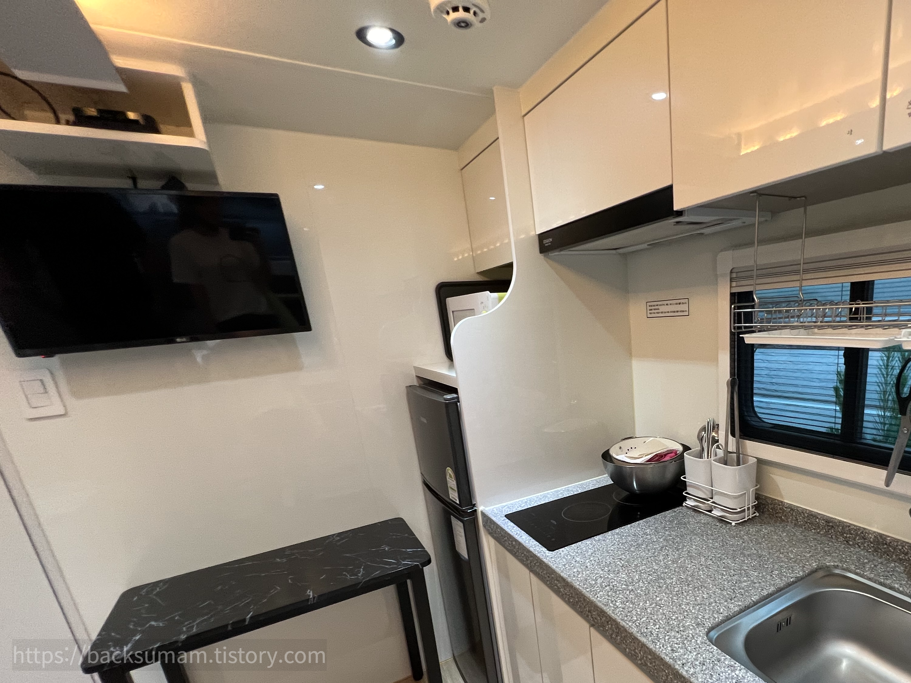 ★★ 카라반 실내에 음식 조리 불가..인덕션이 있지만 선이 끊어져 있어요.