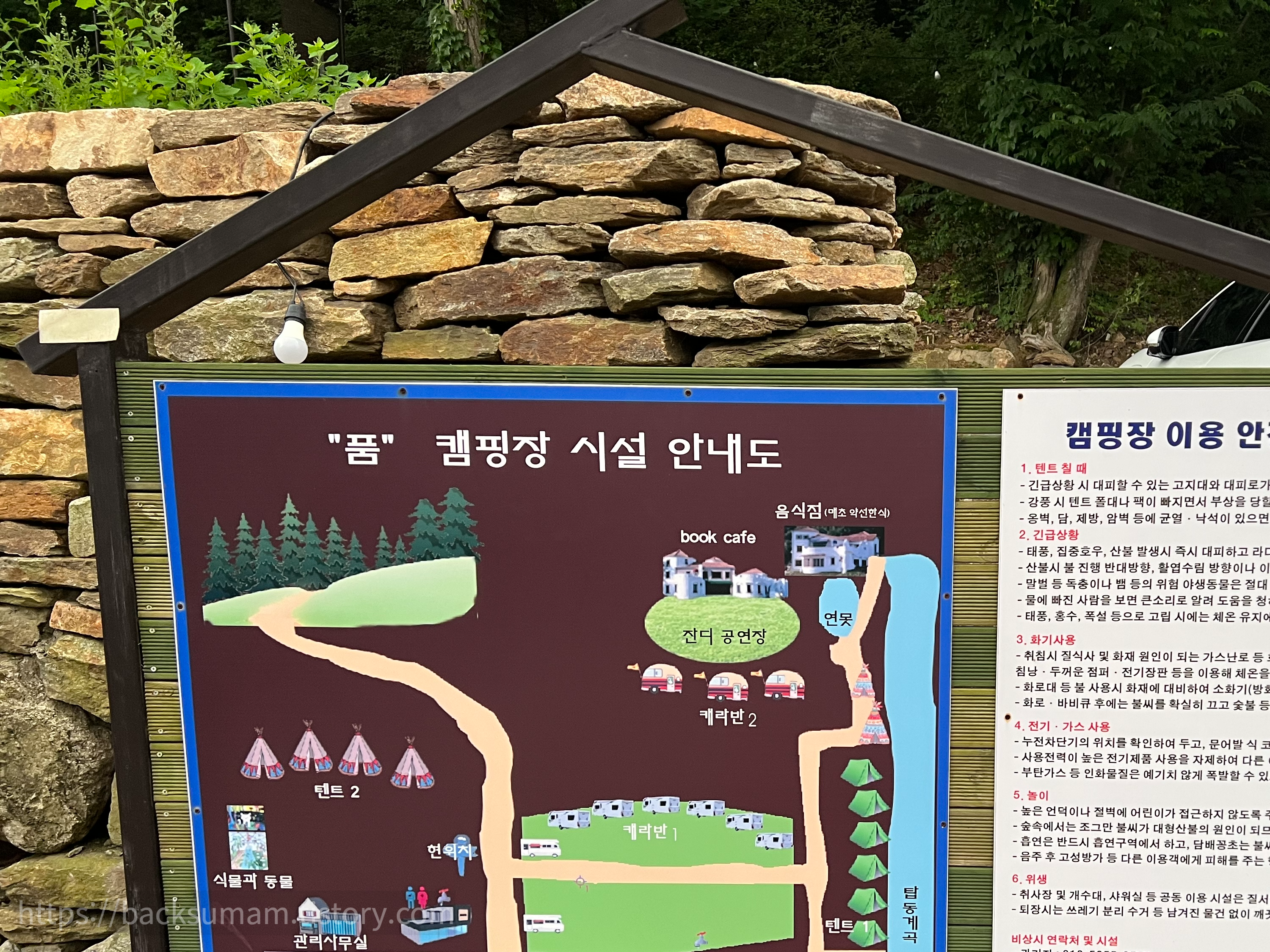 그중에서 그림책동화마을품캠핑장은 바로 근처에 아이들이 놀 수 있는 개울이 있어서 가게 되었죠.