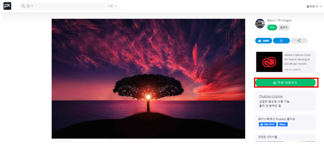초록색 무료 다운로드를 클릭하시면 이미지가 다운로드됩니다.